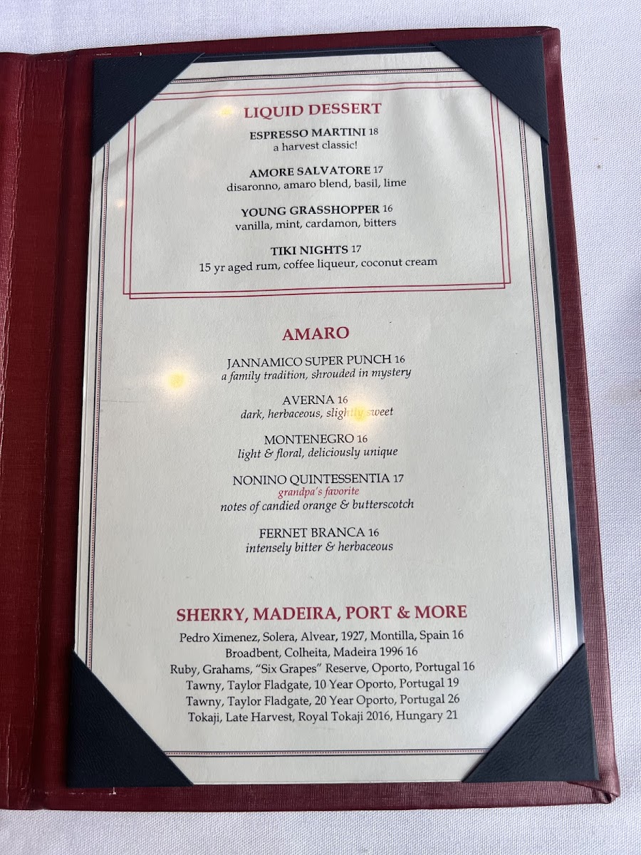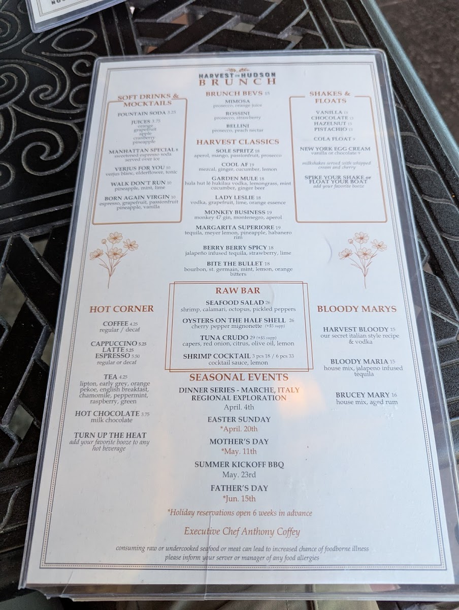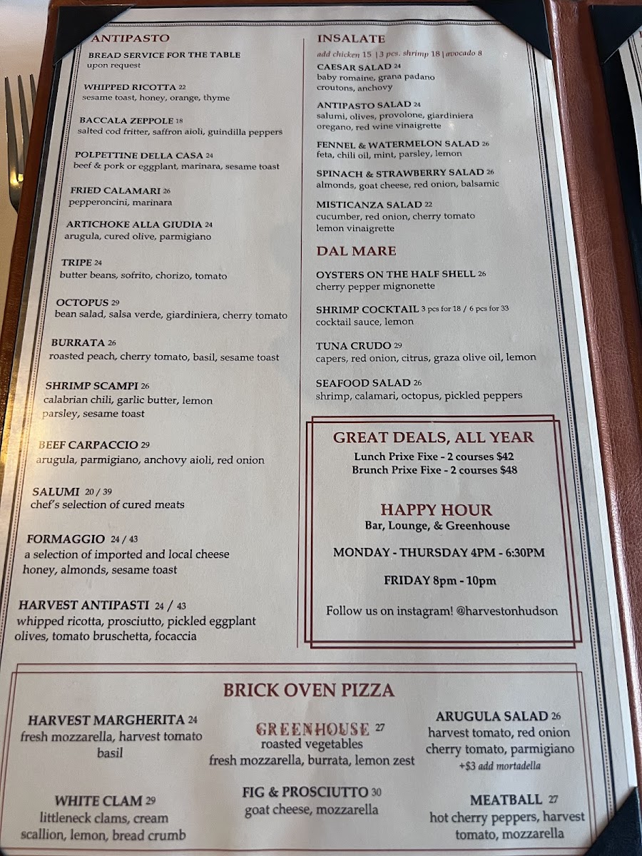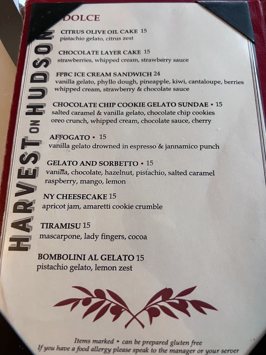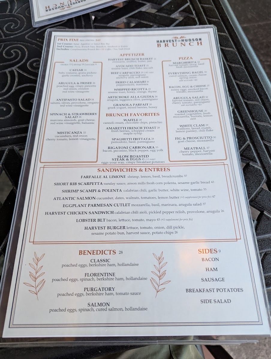 Harvest on Hudson Menu